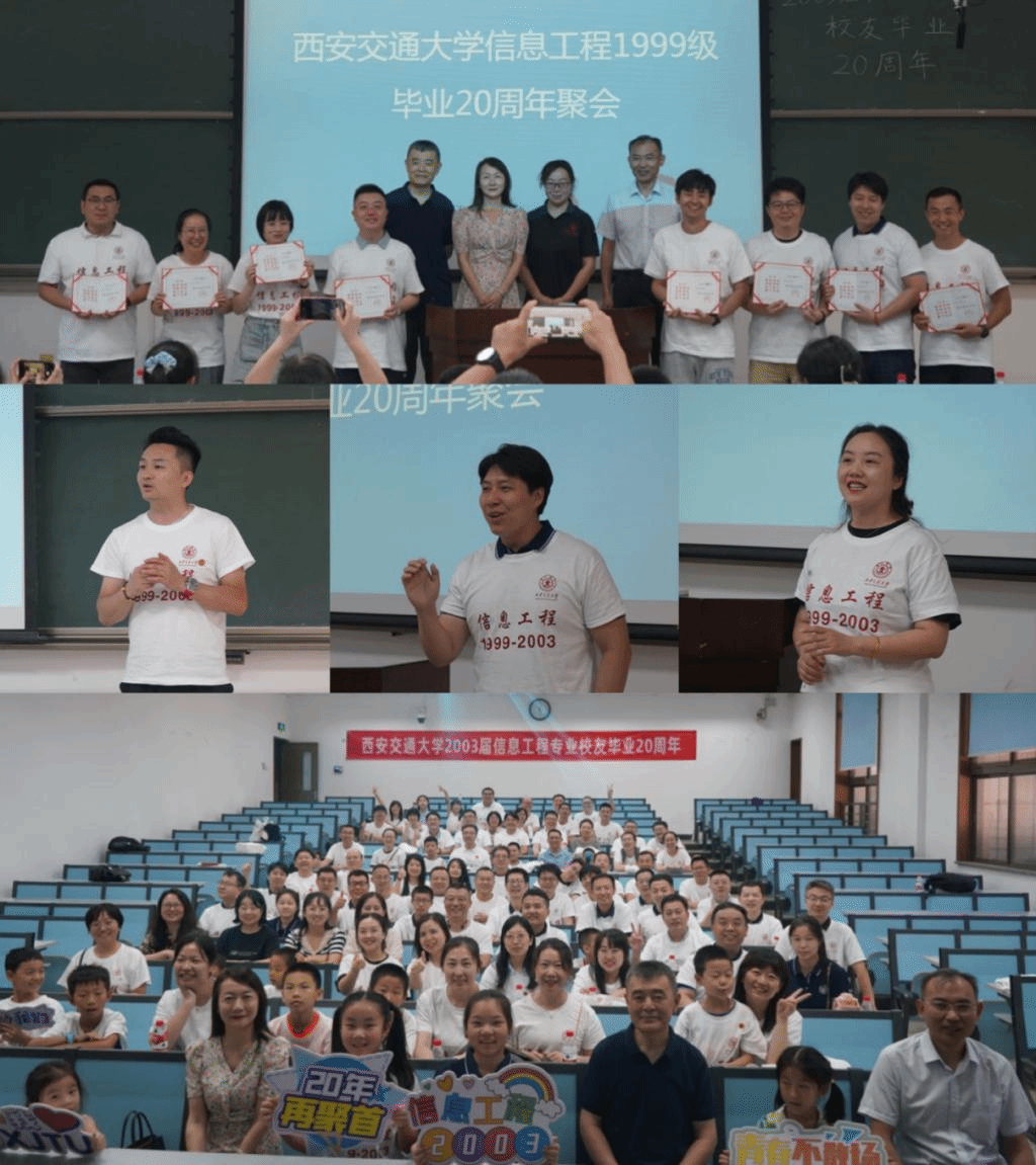返校活动结束后,校友纷纷留言表达对母校的感激,以及与老师同学重逢的喜悦。信息95班杨勇校友表示:“在校园里,我们沐浴知识,砥砺前行。如今,我们已成为社会的中坚力量,肩负着家庭和事业的双重责任。感恩母校的培育,怀念恩师的教诲,珍惜同学的情谊。在未来的道路上,交大同学们不断前行,勇攀人生巅峰,书写属于自己的,属于交大的辉煌篇章!”信息99班王泉校友表示:“在这个7月梦幻般地回到母校,见到了好多熟悉的脸庞,了解了校园西迁的历史,又作为学生聆听了一次邓老师的教诲,拥抱了我曾经一个宿舍的姐妹,参观了宏伟的创新港新,20年之行彻底净化涤荡了我的心灵,让我感觉又回到了18岁那个最纯粹,美好的青春!我爱我的母校,我骄傲我是交大人!”