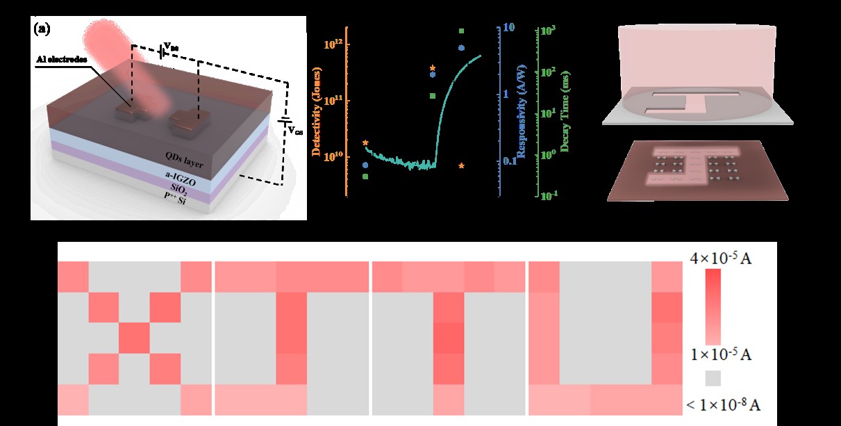 2023年诺贝尔化学奖授予Moungi G. Bawendi、Louis E. Brus和Alexey I. Ekimov,以表彰他们在“发现和开发量子点”方面做出的贡献。在近红外探测领域,硫化铅量子点(PbS QDs)凭借其低廉的生产成本、可调谐的带隙、优异的光电性能而获得广泛关注。以PbS QDs为光敏层,以非晶氧化铟镓锌(a-IGZO)为沟道层的敏化场效应晶体管型光电探测器凭借超高的灵敏度而获得了迅速的发展。这类器件在发展历程中高度依赖基于固相配体交换的PbS QDs薄膜,这使其制备工艺繁琐、良品率低,与卷对卷工艺不兼容,无法满足工业化生产的需求。此外,受基于固相配体交换的PbS QDs薄膜质量所限,这类器件灵敏度的进一步提升受到限制,其空气稳定性较差也是一个问题。