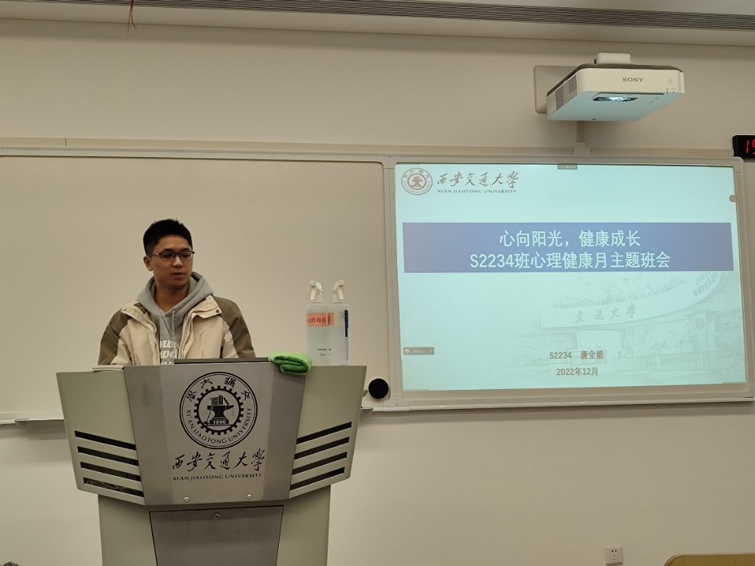 为进一步促进同学们关注心理健康,缓解心理压力,引导同学们发现生活中的美好,使之保持良好的情绪和乐观的心理状态,硕2234班于2022年12月2日在泓理楼4-5204教室开展了以“心向阳光,健康成长”为主题的心理班会,心理委员唐全能主持本次会议。