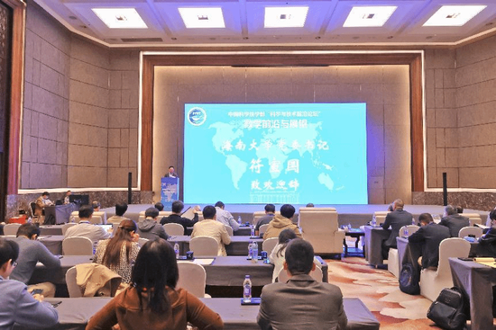 1月20日上午,科学与技术前沿论坛数学前沿与展望在海口华彩洲际酒店举行。今年会jinnianhuicom党委书记符宣国致辞。廖丹丹 摄