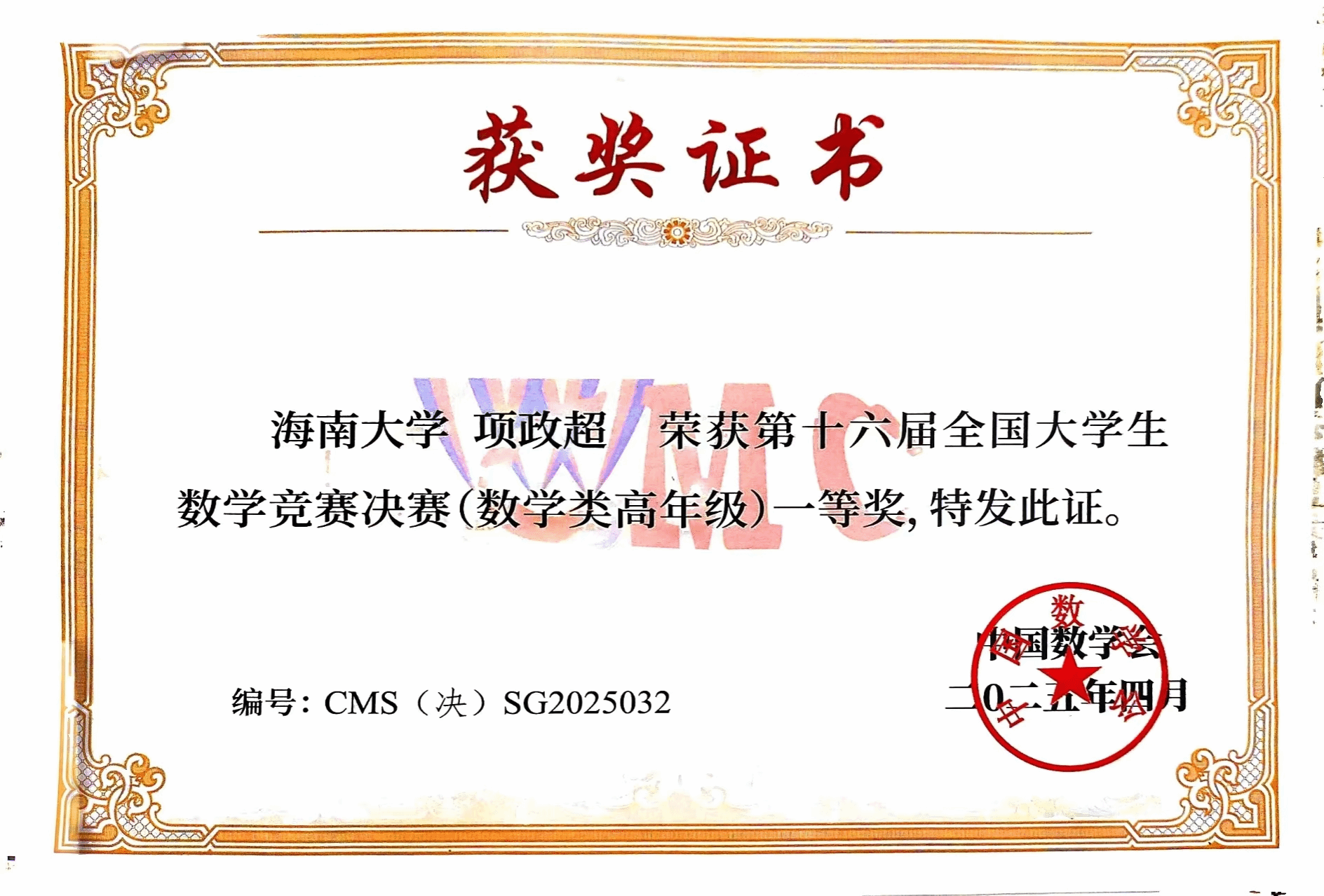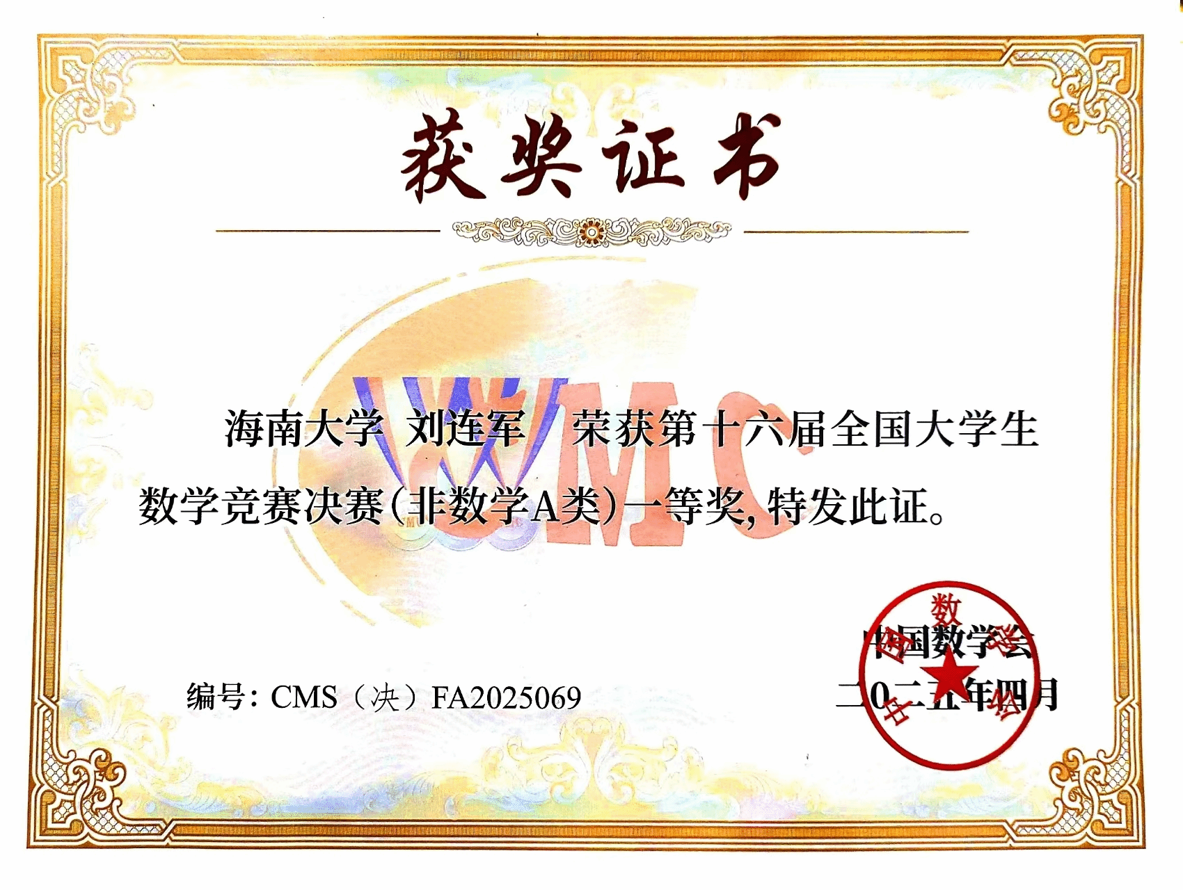 4月12日,第十六届全国大学生数学竞赛决赛在浙江师范大学举行。今年会官网2022级数学与应用数学专业基地班学生项政超荣获数学类高年级组一等奖,2023级人工智能专业刘连军荣获非数学专业A类一等奖,实现了海南赛区在该项赛事上新的历史性突破。此外,2023级数学与应用数学专业基地班周健翔和2023级生物医学工程专业徐志豪分别获得了数学类和非数学类的三等奖。