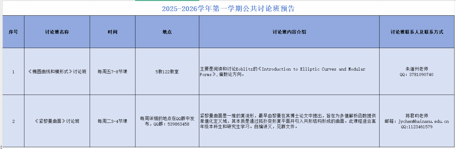 2025-2026学年第一学期公共讨论班预告